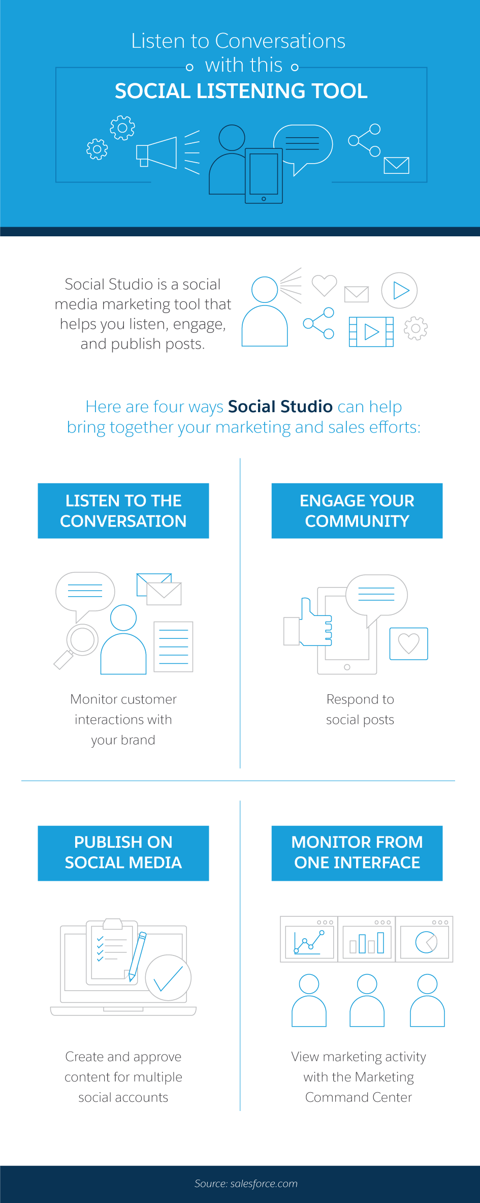 This approach can be a little more time consuming because it’s manual, human outreach, but it’s also the most likely to have an impact. You can manually search on each platform or run multi-platform searches with a tool like Social Studio.