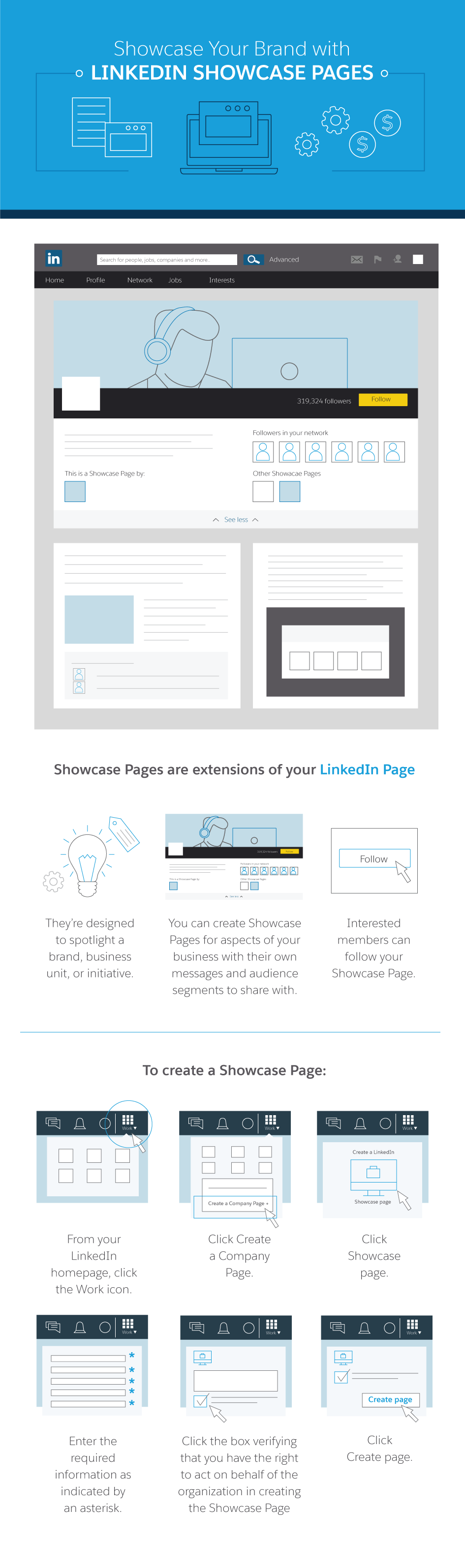 For instance, many companies miss out on LinkedIn’s Showcase Pages, which are pages affiliated with your main business page but have their own URL. Think of them as landing pages for your offerings within LinkedIn.