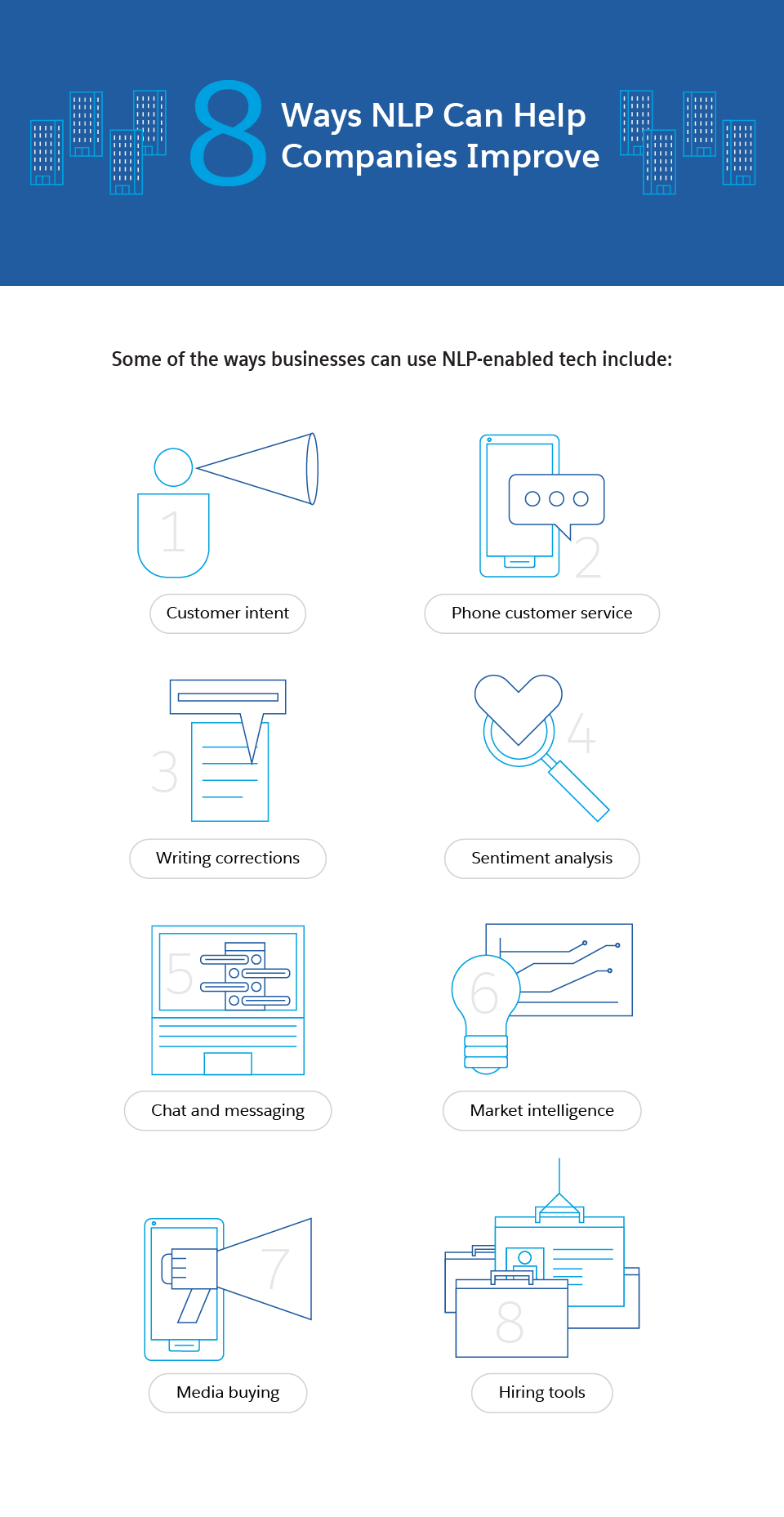 Natural language processing helps workers with menial tasks, improves their writing, assists a brand in understanding how customers feel about its products, and more.