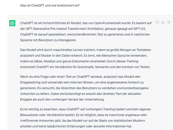 Fragen Sie ChatGPT, was es ist und wie es funktioniert, erhalten Sie folgende Antwort: