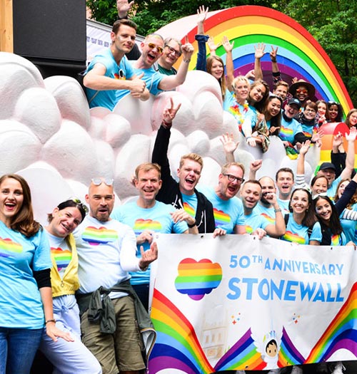 Eine wichtige Rolle spielen zweitens Mitarbeitergruppen, in denen sich Mitarbeiter:innen organisieren. Unser internes LGBTQ+-Netzwerk “Outforce” etwa setzt sich intern, bei und mit unseren Kund:innen und Partnerunternehmen ein, stellt Veranstaltungen auf die Beine und schafft somit ein Forum, in dem die Bedeutung und der Wert von Vielfalt und Respekt erlebbar werden. Gleichzeitig bieten diese Gruppen allen im Unternehmen die Möglichkeit, sich für Gleichberechtigung einzusetzen. Und zwar als Fürsprecher:innen oder “Allys”. Indem sie Fragen stellen, achtsam zuhören, sich an Initiativen im Unternehmen und darüber hinaus beteiligen und Farbe bekennen, wenn es darauf ankommt.