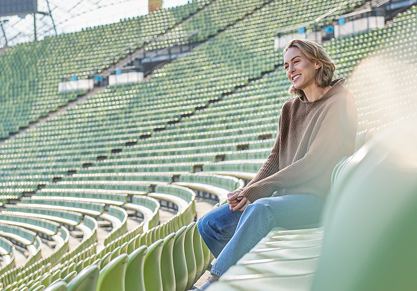 Eine gute Woche nach ihrer Rückkehr aus China treffen wir Alexandra Burghardt an einem der letzten Wintertage zum Interview im Münchner Olympiapark. Hier kennt sie sich bestens aus, am Olympiastützpunkt trainiert sie regelmäßig. Auch in das Stadion mit dem imposanten Zeltdach wird sie schon bald zurückkehren. Im Sommer findet hier die Leichtathletik-Europameisterschaft statt. Für ihre Eltern hat die schnellste Frau des Landes bereits einen Platz auf Höhe der Ziellinie reserviert. Bei ihren beiden olympischen Auftritten durfte die Familie wegen der Pandemie nicht dabei sein. „Dann muss ich eben bei den Spielen 2024 in Paris wieder am Start sein“, kommentiert sie trocken.