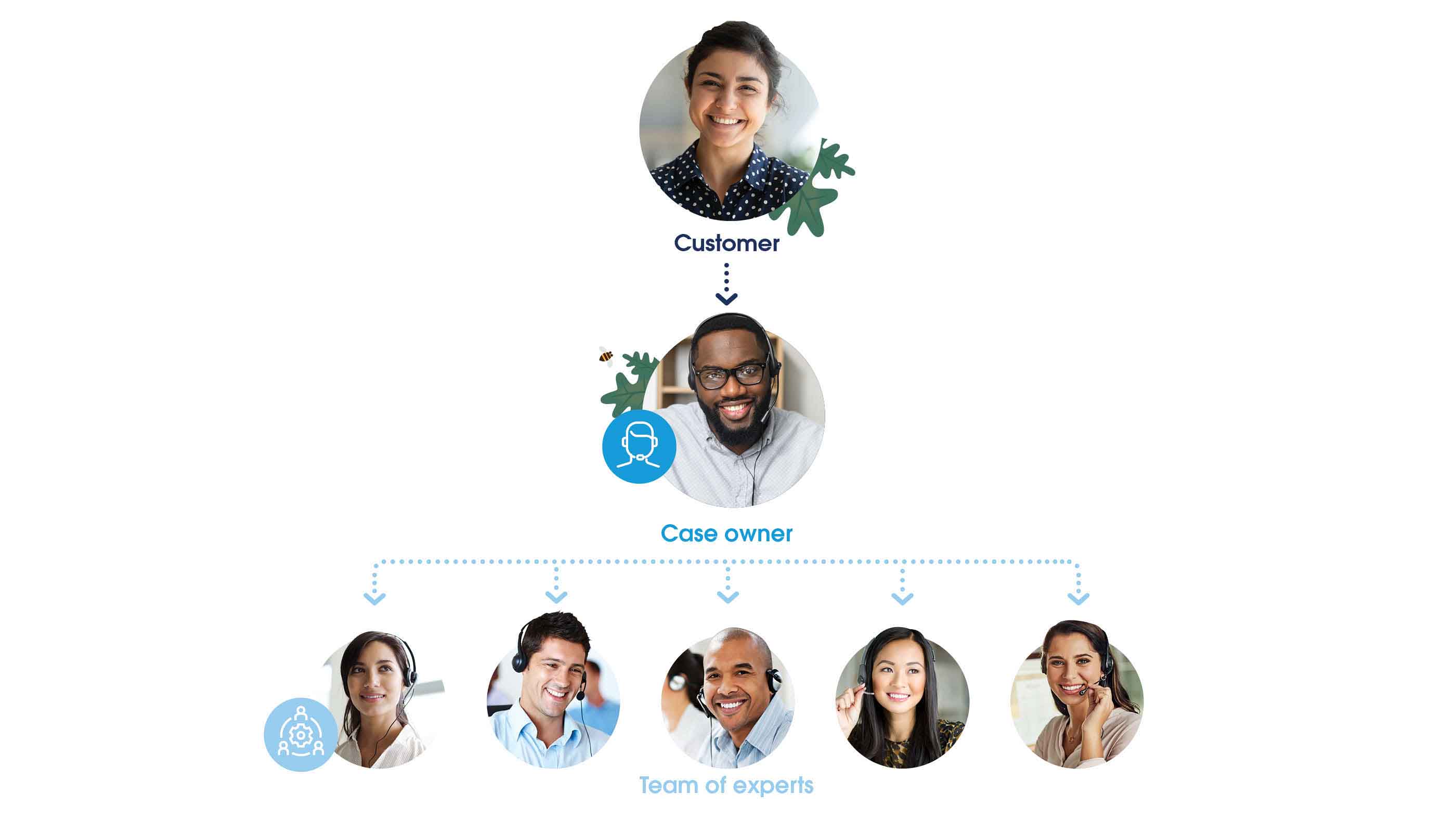Para el enjambre de casos el cliente es lo más importante de la experiencia de asistencia. Este tipo de modelo de asistencia se ha diseñado para garantizar que los clientes traten solo con un responsable para cada caso, alguien que tenga la experiencia necesaria para resolver cada problema rápidamente.