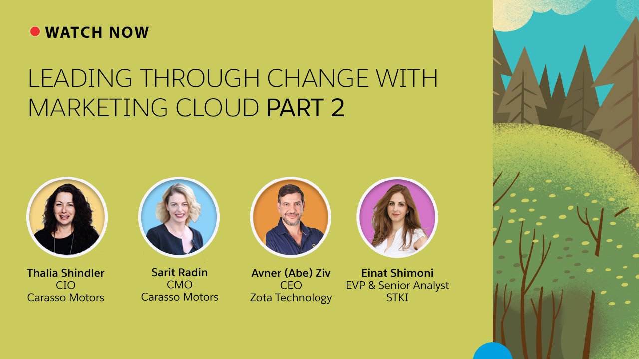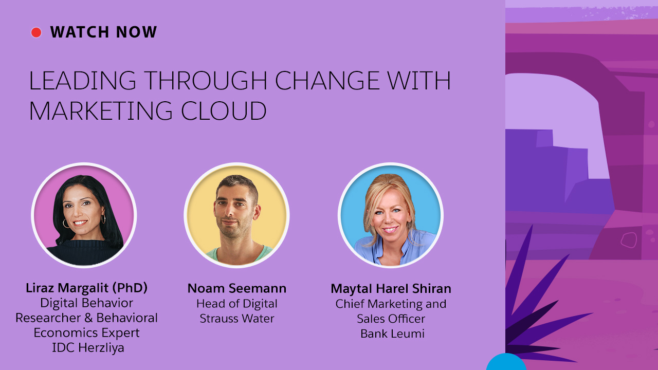 צפו בשתי התכניות של Salesforce Israel Live, שעוסקות בעולם השיווק וחוויית הלקוח, בסדרת Leading Through Change, שישודרו בלייב ב-24.6 וב-1.7, בשעה 11:00. וקבלו הזדמנות נדירה לשמוע ממקור ראשון מלקוחות פורצי דרך, כיצד הם התמודדו עם המשבר בהצלחה ואיך הם נערכים אל העתיד. יהיה מרתק!