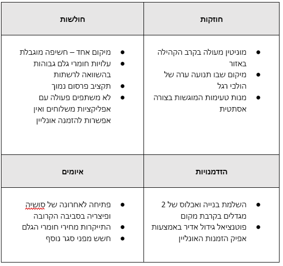 דוגמה לניתוח SWOT בעסק קטן