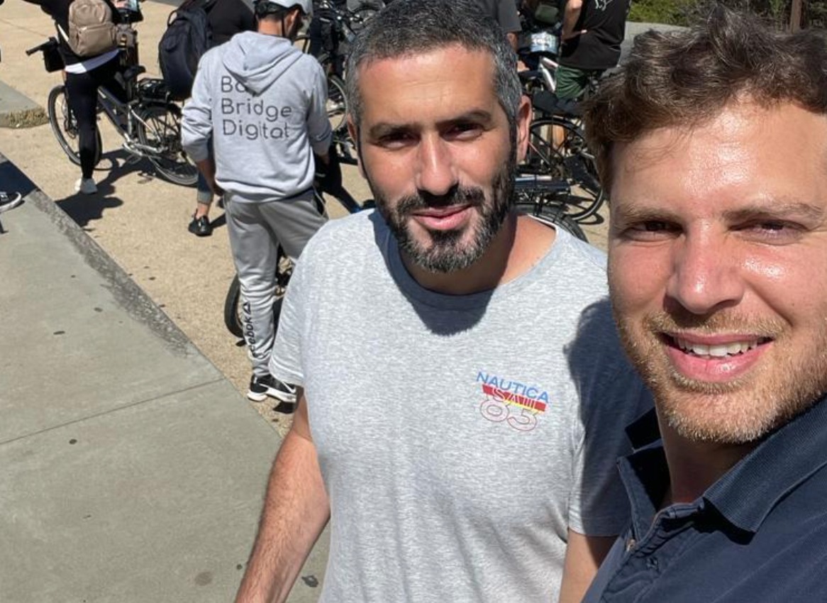בן פרנקו (מימין), Account Executive של Coralogix בסיילספורס ואריאל אסרף, מייסד ומנכ״ל Coralogix בסן פרנסיסקו, בכנס Dreamforce