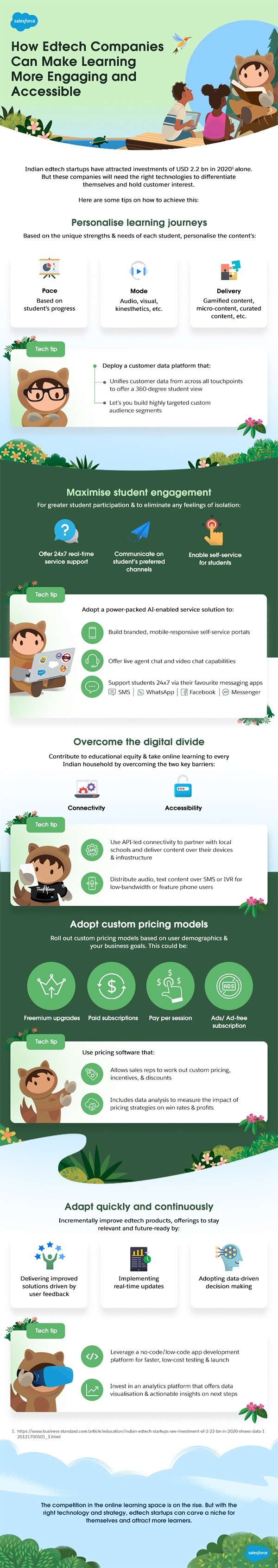Edtech companies can adopt Salesforce Customer 360 or its suite of solutions to build an agile, scalable, and future-ready model.