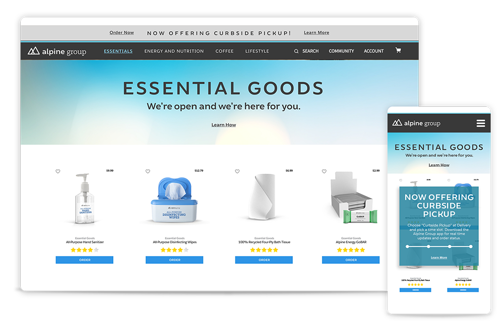 Acelera el proceso de compra para el consumidor y para los negocios de bienes esenciales con tiendas en línea desactualizadas o inexistentes, poniendo rápidamente en funcionamiento el nuevo sitio web. La solución incluye la gestión de pedidos y comercio digital, así como también integraciones de servicios de envío, impuestos y pagos predefinidos.