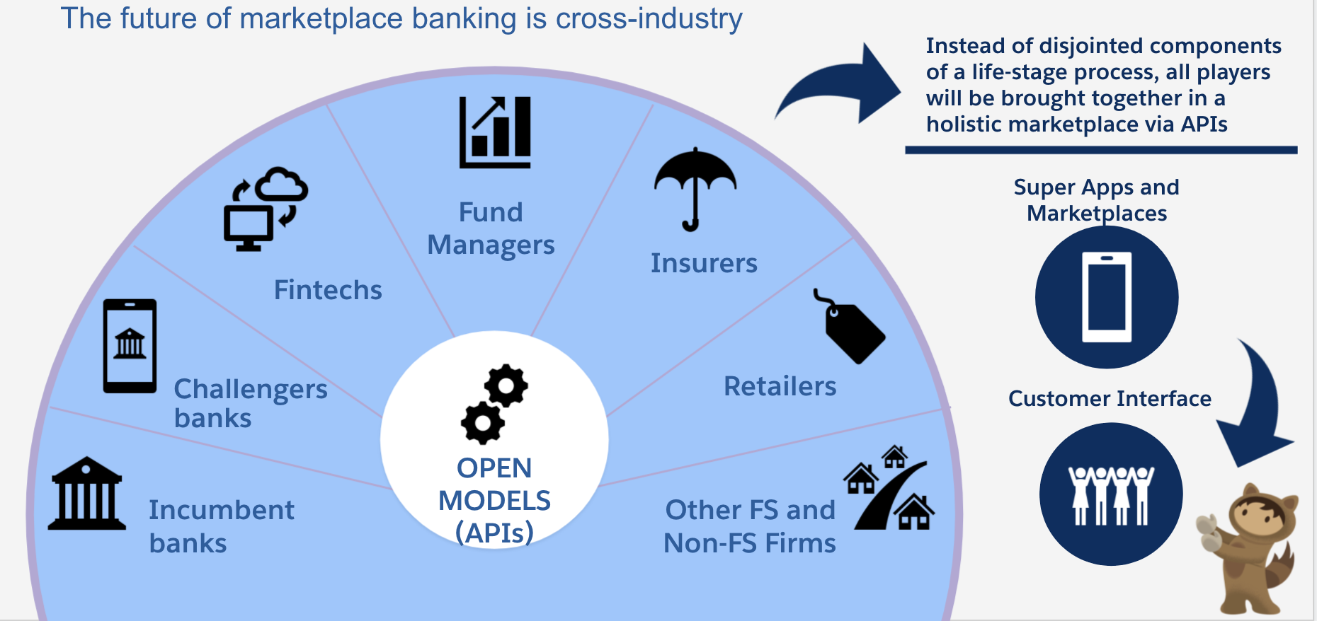 Además, una encuesta de Salesforce de 2020 muestra que más del 60% de los consumidores están dispuestos a compartir datos para beneficiarse de mejores experiencias. Con una audiencia cada vez más experta en compartir datos a cambio de mejores experiencias, surgirán nuevos actores y servicios que desafiarán a las instituciones tradicionales. Estar preparado para aprovechar las nuevas tecnologías y explotar la inteligencia de datos se convierte en una parte esencial de las empresas de servicios financieros.