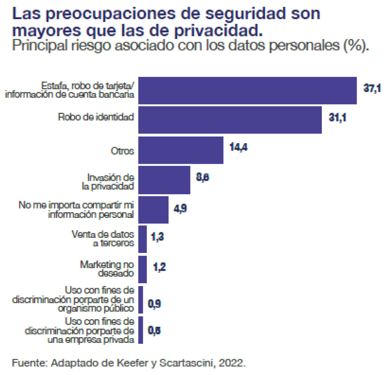 Un tercer factor que influye en la lentitud para la adopción de nuevas tecnologías es la falta generalizada de confianza en las personas y en las instituciones. Los latinoamericanos consideran que la transformación digital incrementa el comportamiento oportunista presente en el mundo analógico, en lugar de atenuarlo. El 76,8% cree que compartir sus datos personales implica más riesgos que beneficios.