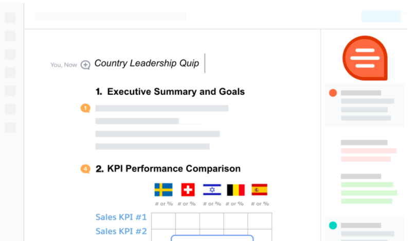 One of the more unique use-cases is for sales management to track performance across multiple metrics — connecting our CRM data into embedded spreadsheets and documents in Quip in doing so. This has been one of biggest contributors in creating a data driven culture in our management team. A Country Manager’s leadership quip, for example may contain a varied dataset that covers the below data, compared across multiple teams: