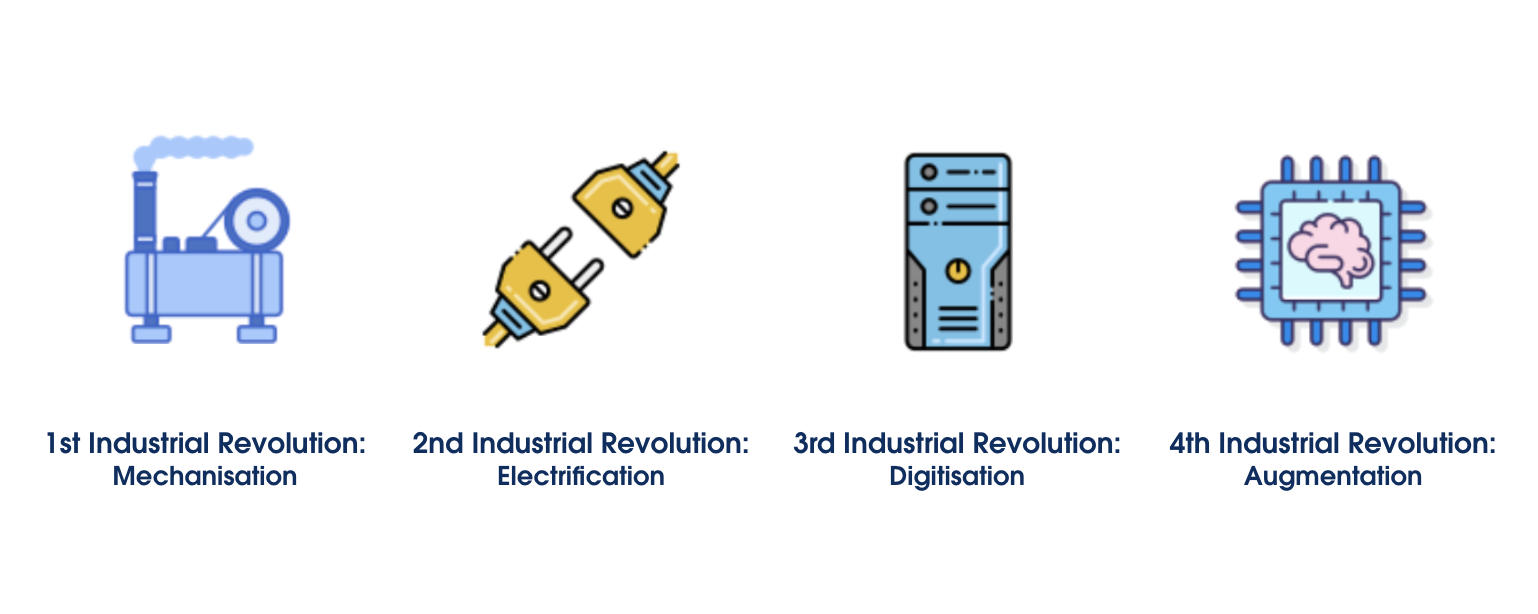 The first Industrial Revolution centred around the mechanisation of processes by harnessing steam power. The second Industrial Revolution revolved around electrification with the advent of practical electrical availability. The third Industrial Revolution involved digitisation with the dawn of modern day computing. Today, according to the World Economic Forum, we are in the midst of the fourth Industrial Revolution - one that brings together diverse technologies such as the Internet of Things (IoT), Augmented Reality (AR) and Artificial Intelligence (AI) into areas that fit around human augmentation.